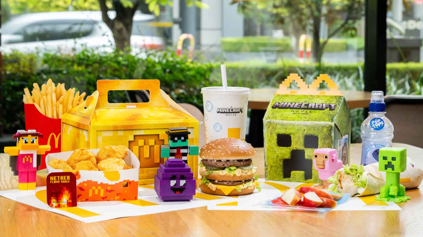 Each comes with a scannable code for an exclusive game that allows players to complete their own quests in Minecraft Movie World at www.happymeal.com.